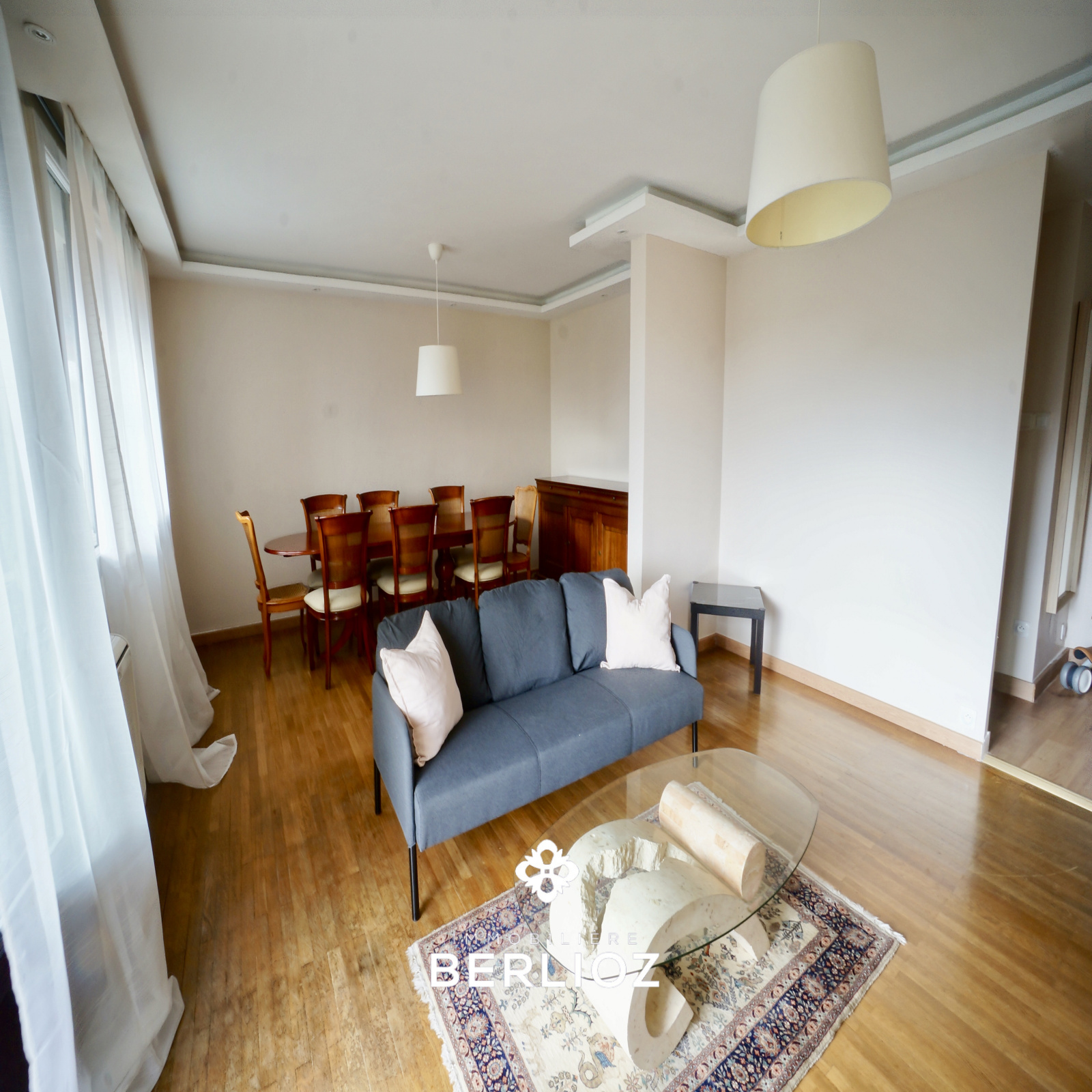 Cet appartement très lumineux bénéficie de belles prestations : faux-plafonds avec spots intégrés, parquet, store-banne, porte d'entrée blindée, wc avec lave-mains.