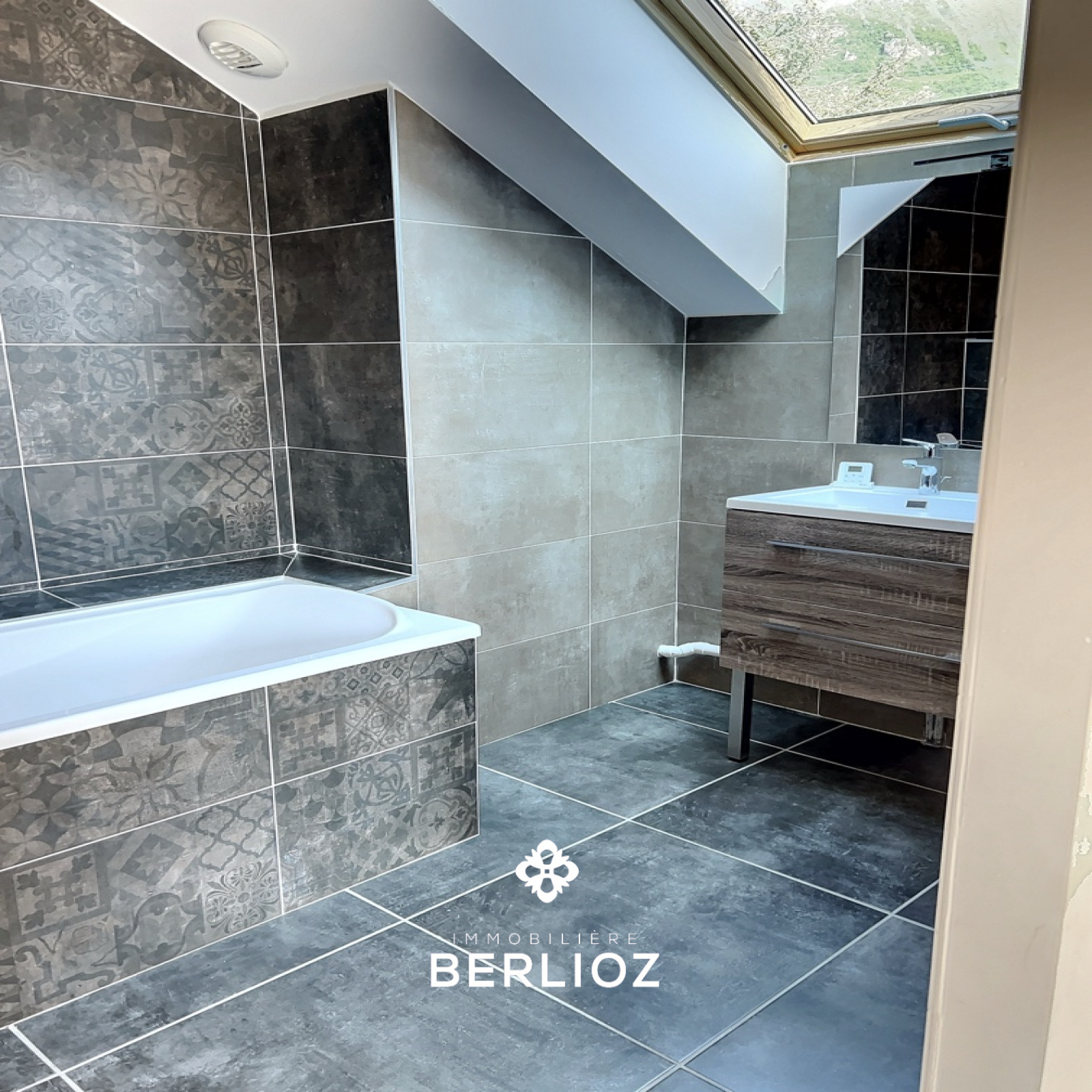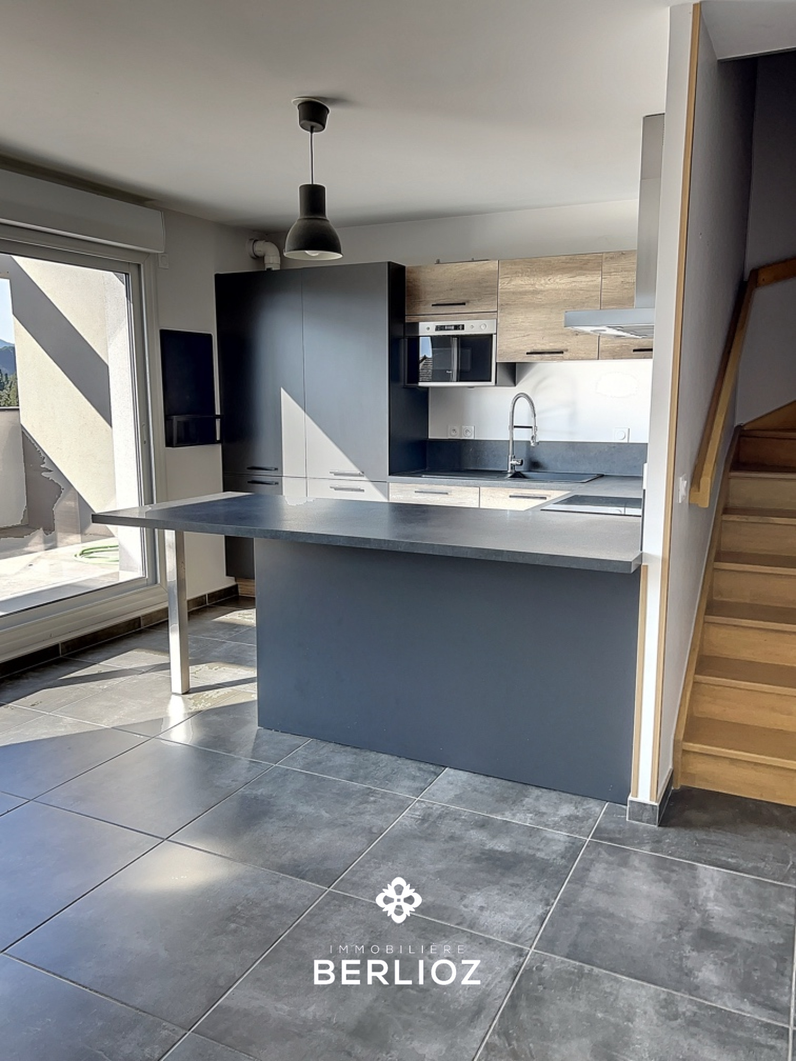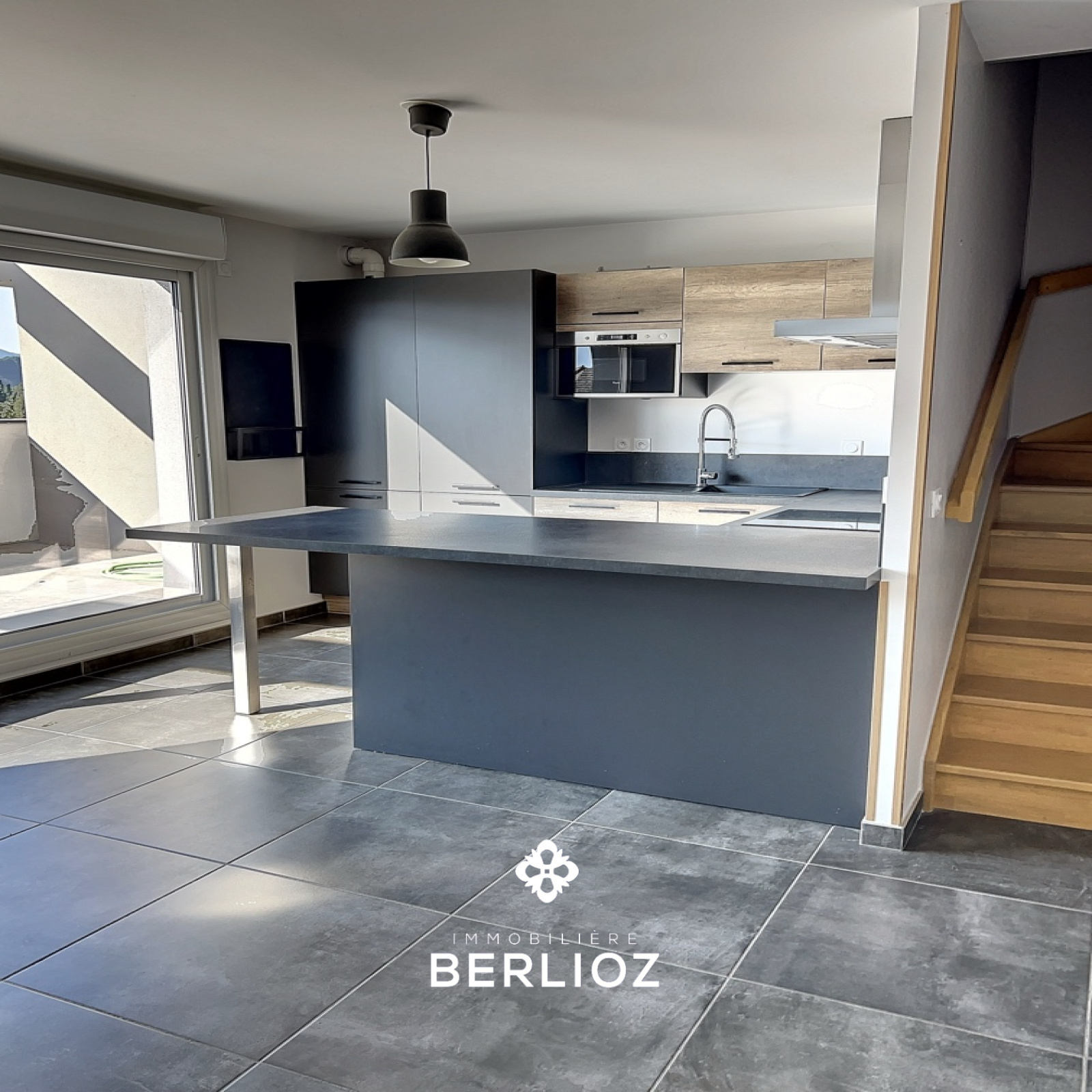 CLAIX, coeur du village, 6 rue du 11 novembre, dans résidence fermée de 2017 magnifique T4 en duplex de 84 m² au 3ème et 4ème étage, (dernier étage) ascenseur, 2 terrasses, (29 et 50 m²) garage fermé et sécurisé, 2 places de parking, chauffage individuel au gaz, huisseries en PVC double vitrage, il distribue : au 3ème étage, entrée carrelée avec placard/penderie, WC avec rangements, une belle cuisine équipée avec ilot central, séjour carrelé qui ouvre sur une belle terrasse sud, salle d'eau avec douche à l'italienne, 2 chambres avec sol parquet,au 4ème étage, chambre parentale, salle de bain privative avec baignoire, elle ouvre sur une belle terrasse exposée sud et est. Au rez de chaussée un garage fermé de 18m², 2 places de parking privatives. CLASSE ENERGIE (B) 82,10 kwh/m²/an CLASSE CLIMAT C) 16,80 kgCO²/m²/an, loyer de référence majoré : 1108 euros complément de loyer : 129 euros (duplex + 2 terrasses +79 euros, lave-vaisselle + 50 euros) garage : 100 euros + provisions pour charges : 90 euros, dépôt de garantie : 1337 euros honoraires d'agence : 1092 euros (dont 252 euros E.D.L) libre au 1er juillet 2026, contact : immobilière Berlioz Meylan