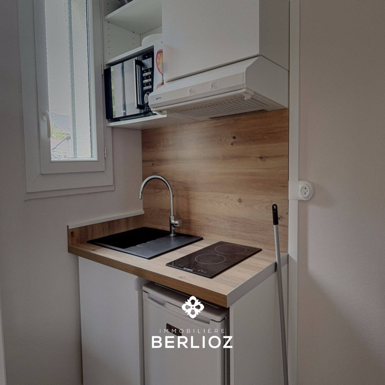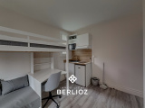 Le studio est entièrement meublé : lit mezzanine, kitchenette, bureau, salle d'eau avec wc. Place de parking disponible en sus du prix.