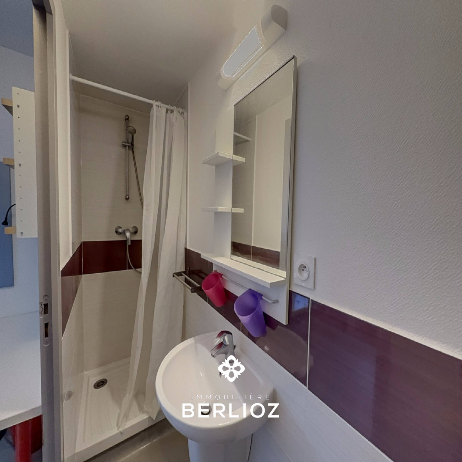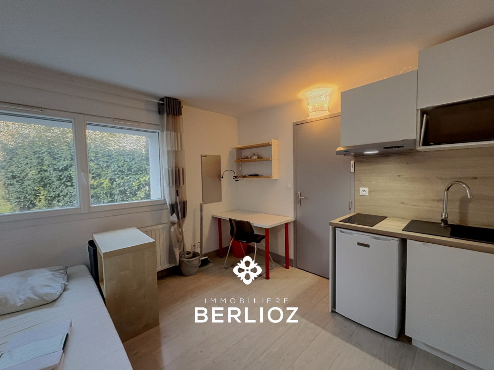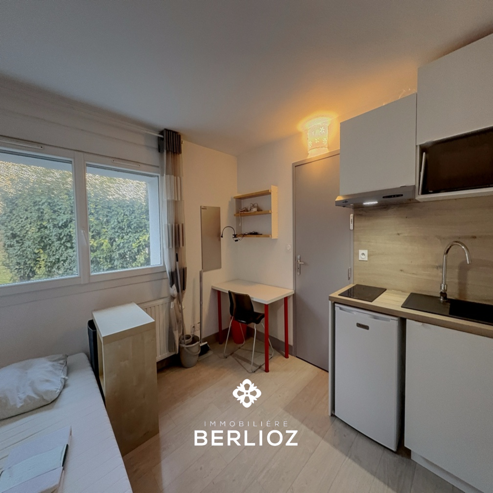 Le studio est entièrement meublé : lit, kitchenette, bureau, salle d'eau avec wc. Place de parking disponible en sus du prix.
