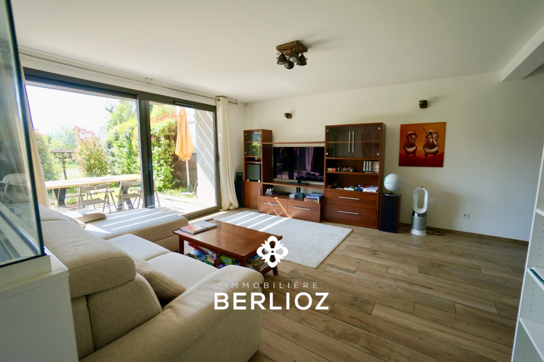 À l’extérieur, terrasse et jardin privatif prolongent naturellement les espaces de vie, invitant à la détente face à la chaine de Belledonne.
