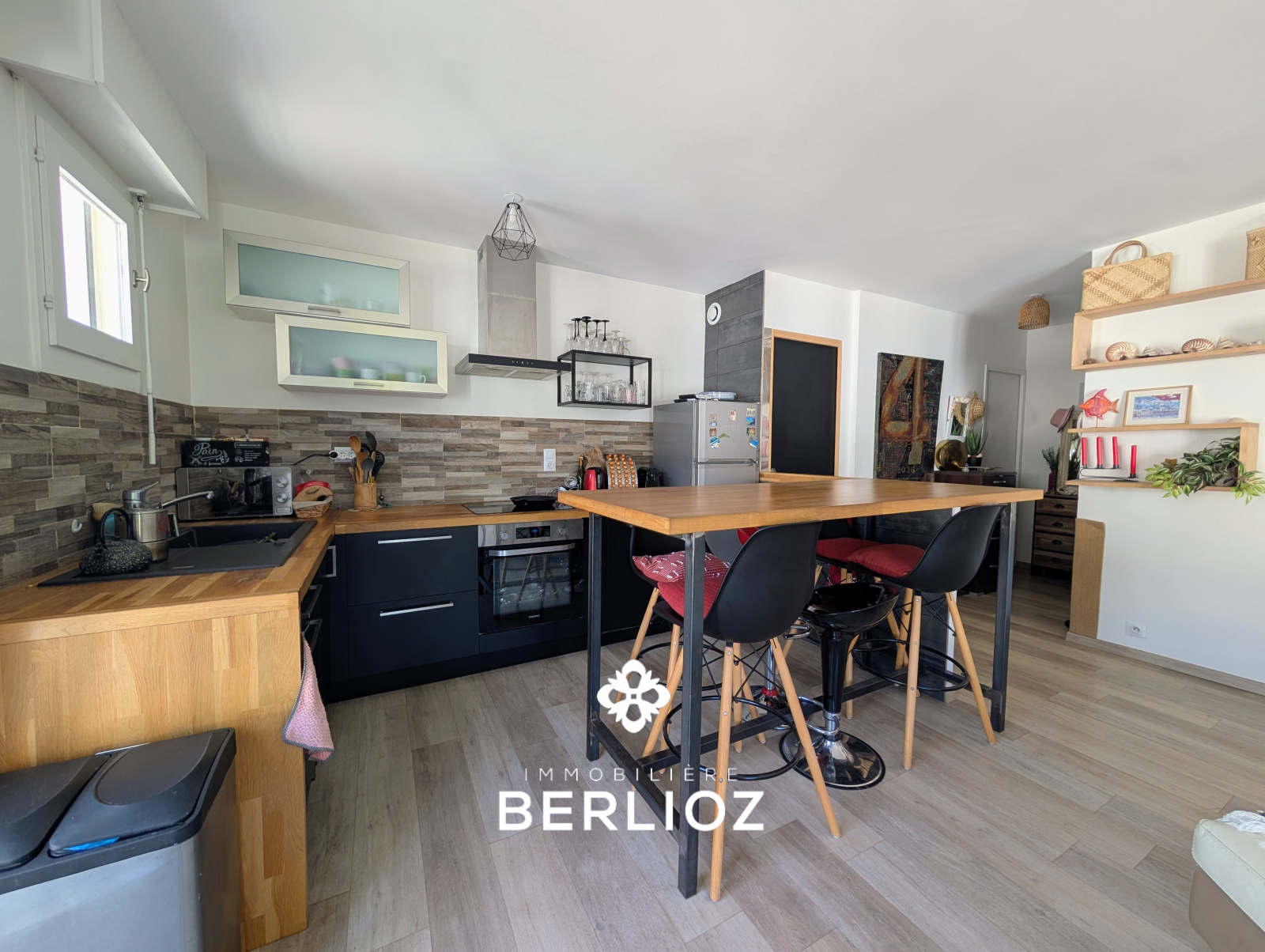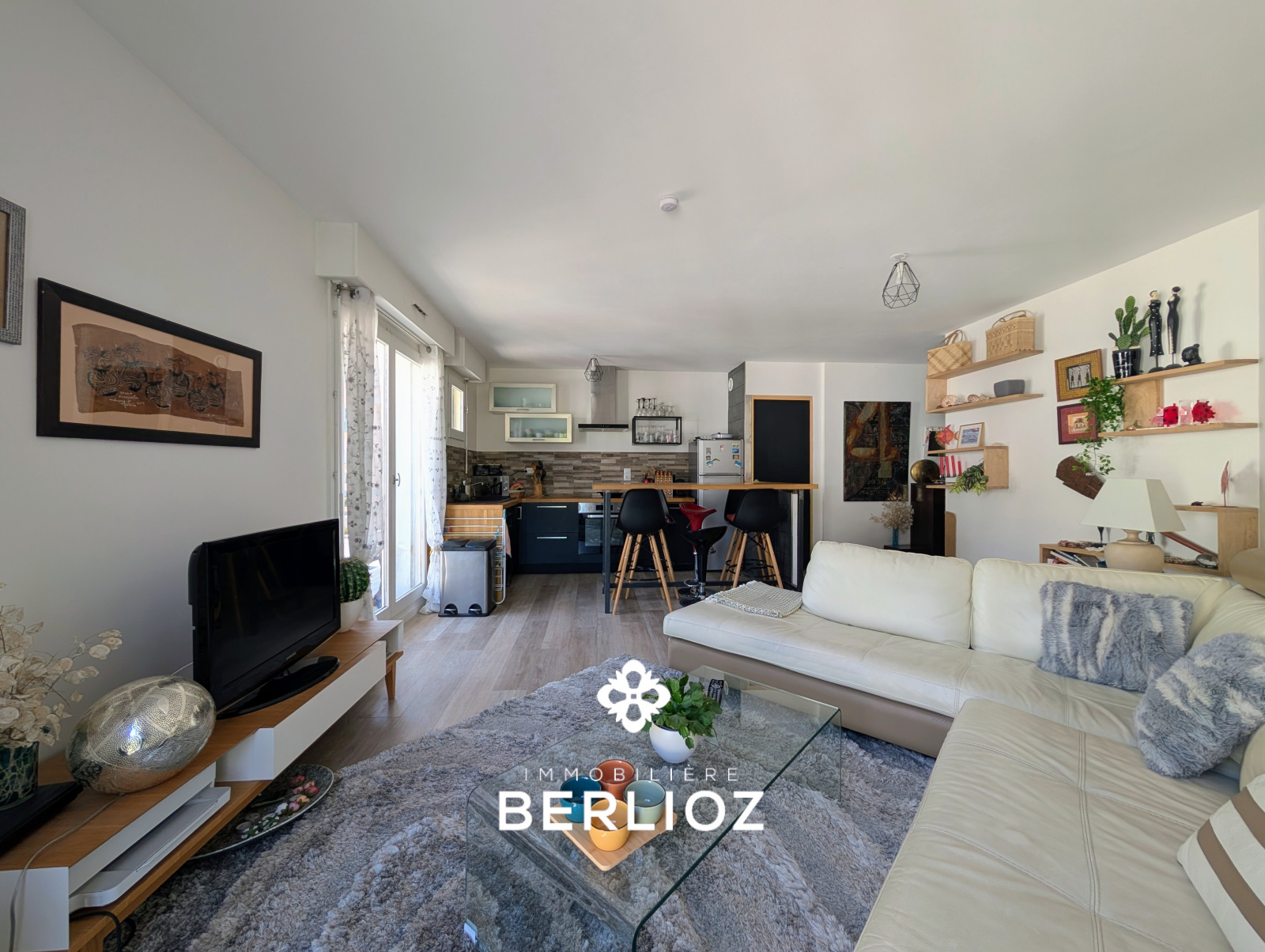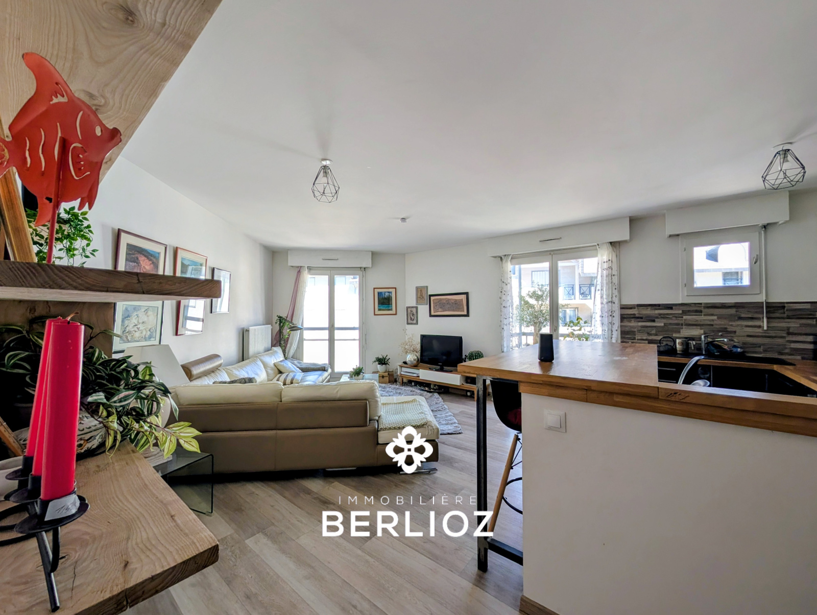 - une belle pièce de vie lumineuse avec cuisine ouverte aménagée et équipée