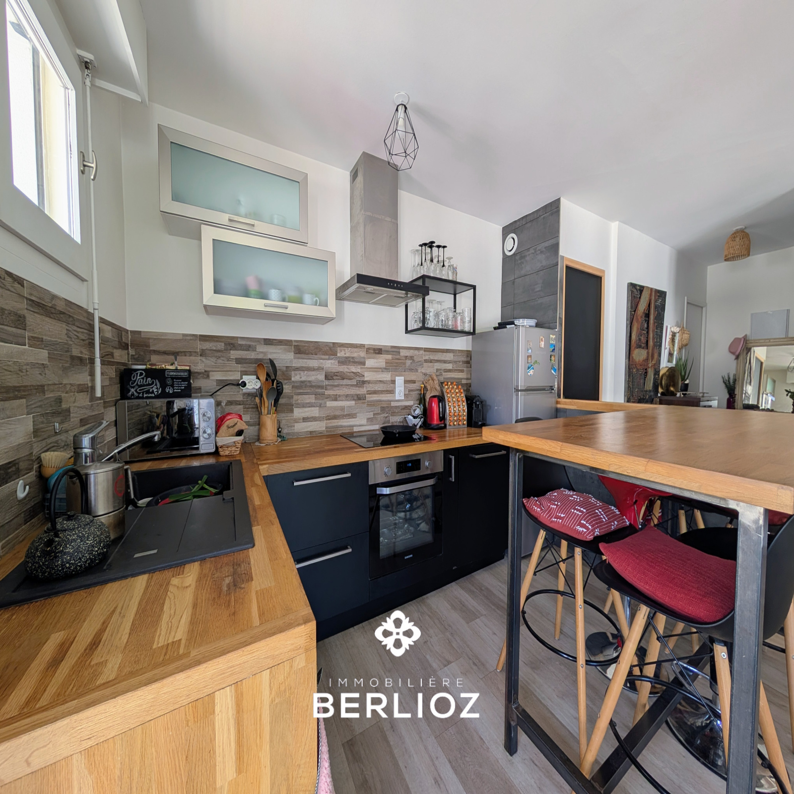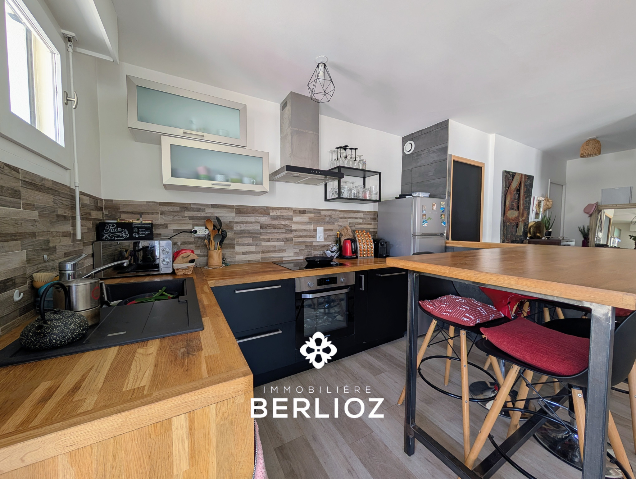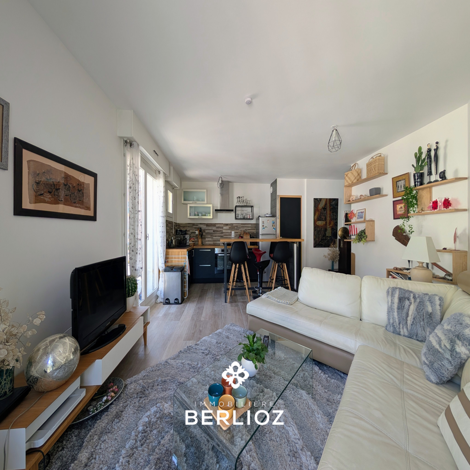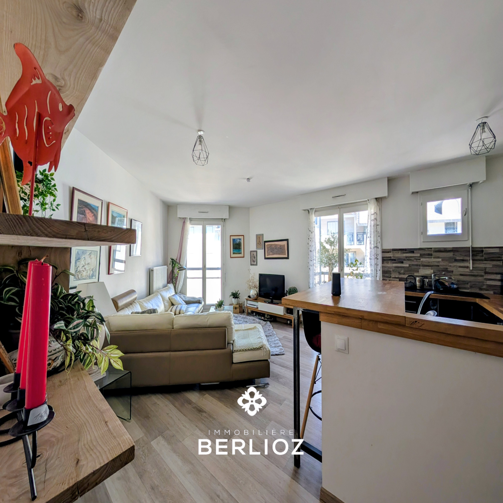 - une belle pièce de vie lumineuse avec cuisine ouverte aménagée et équipée
