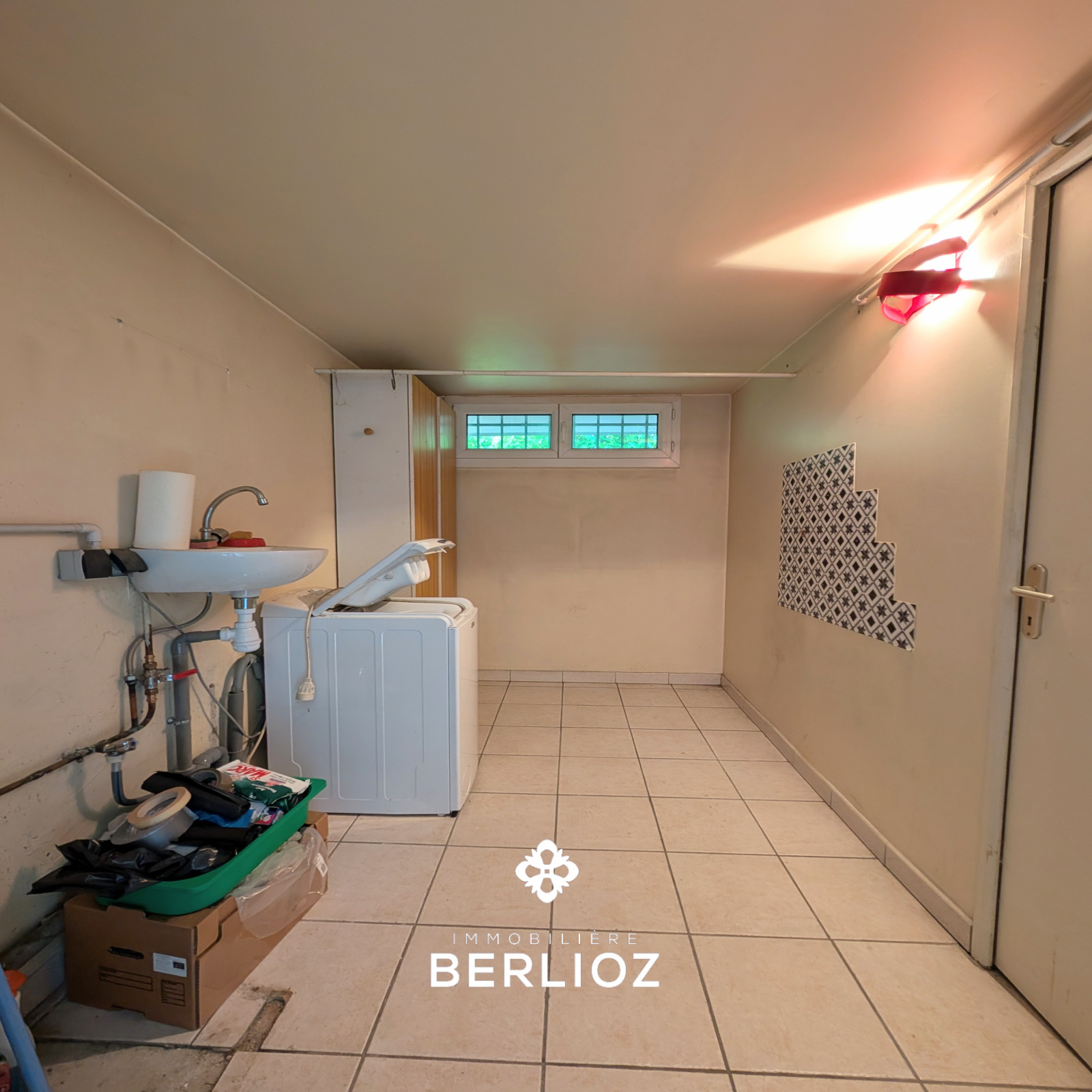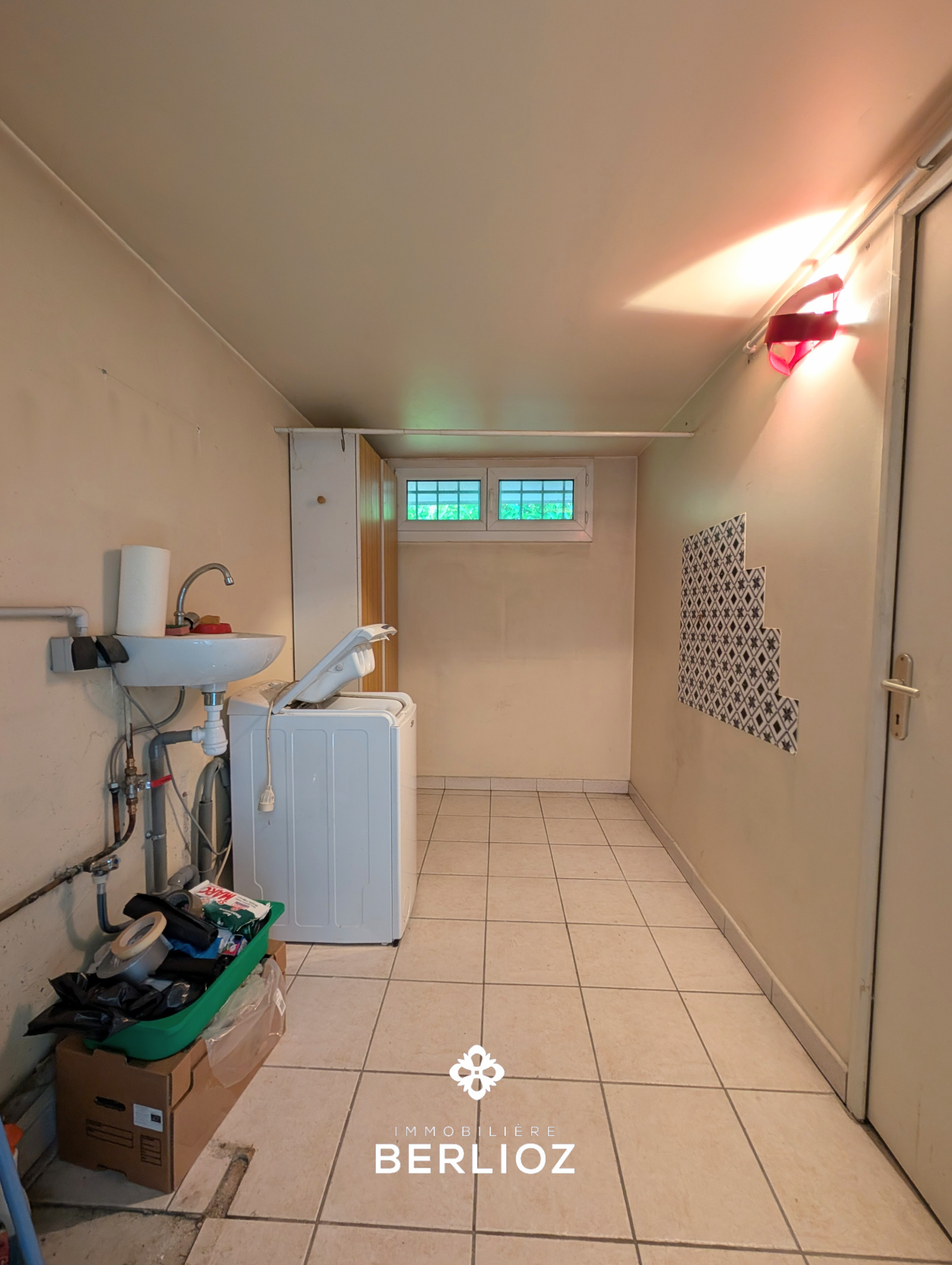 Point d'eau dans la buanderie, jardin privatif de 150 m², espace de stationnement goudronné à l'avant.