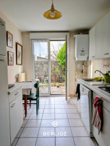 T5 très bien agencé, composé d'une entrée, d'un salon exposé et d'une cuisine séparée (ouvrable) tous deux donnant sur le jardin à l'Ouest, la cuisine donne accès à une buanderie de 5m² qui elle même mène au garage depuis la maison. Nous retrevons également au RDC une chambre parentale avec sa propre salle de douche.