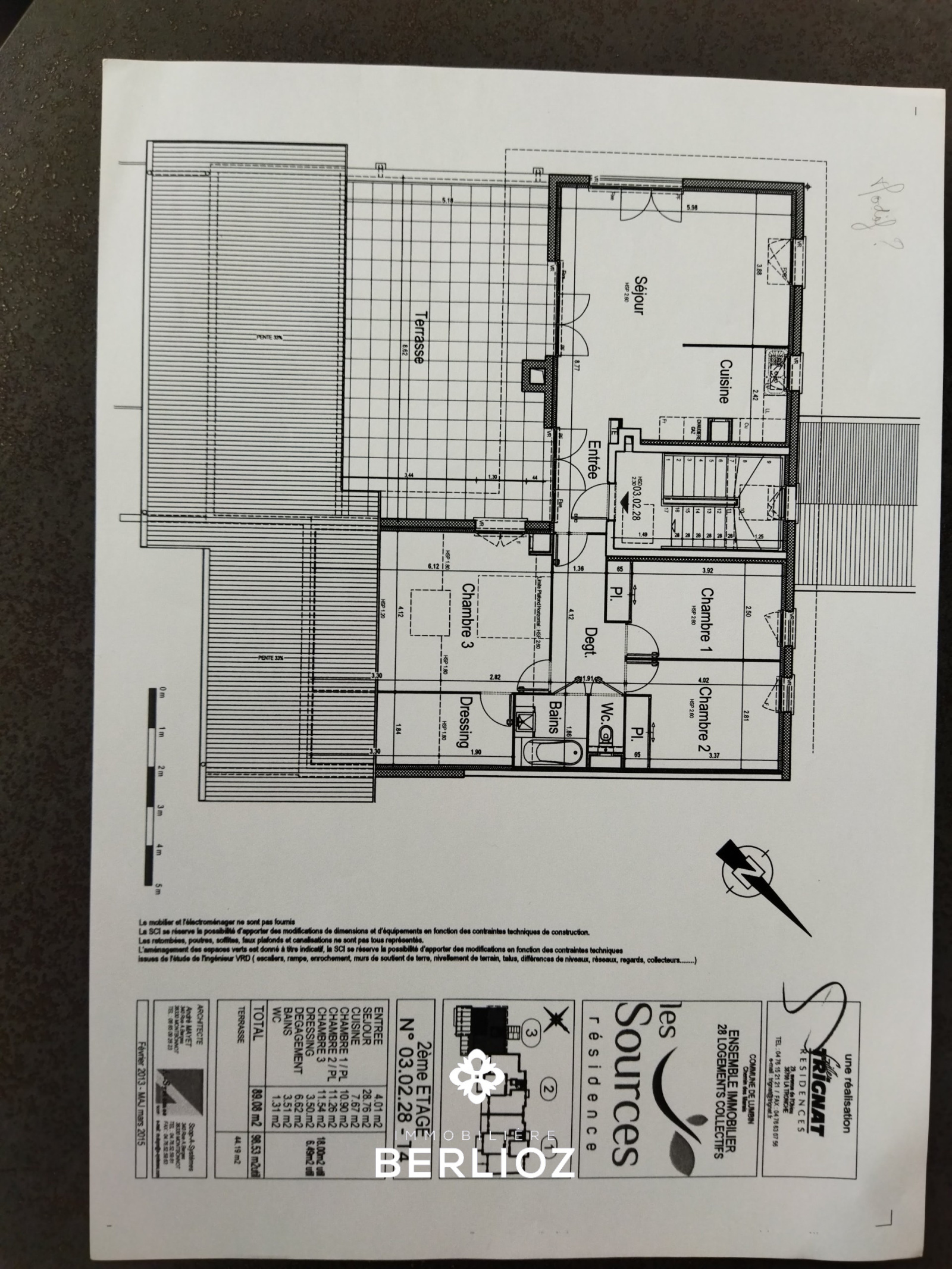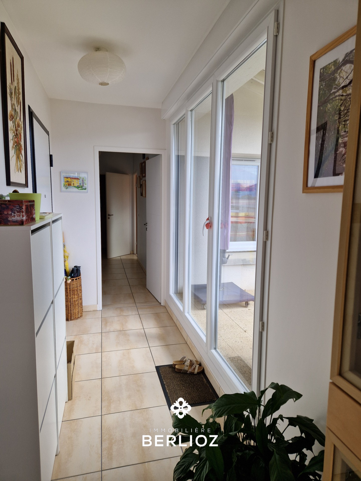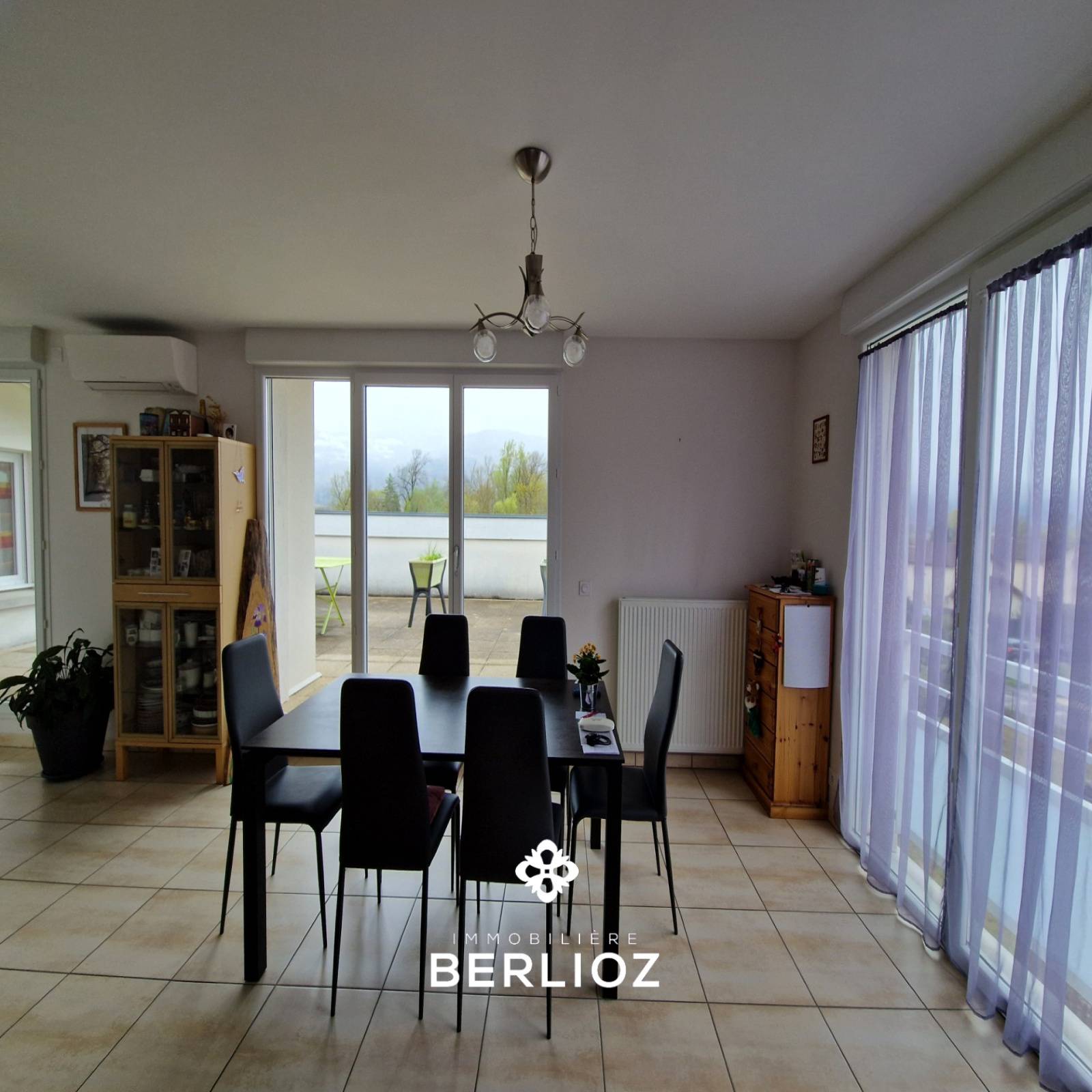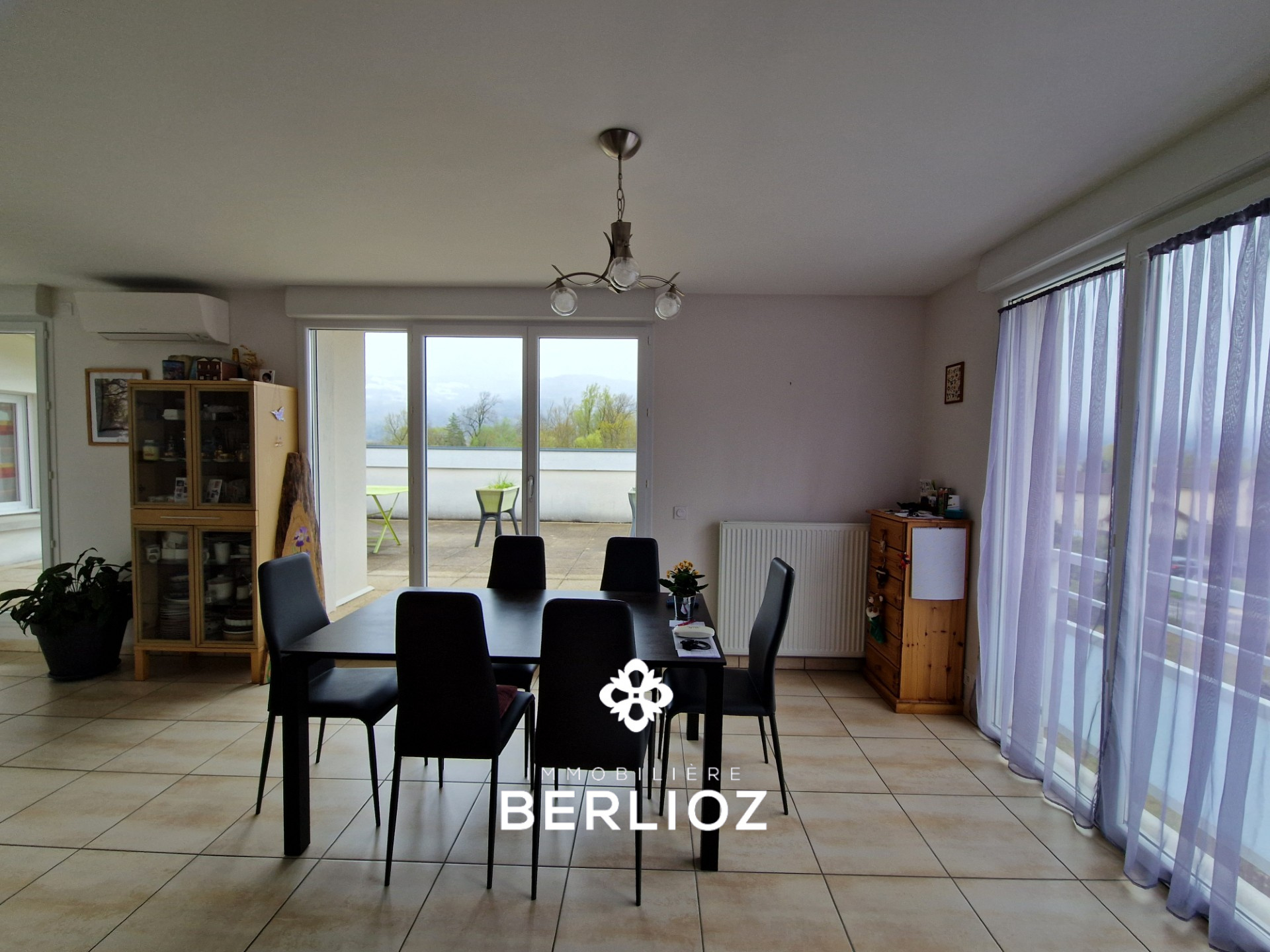 LUMBIN coeur du village, dans une résidence de 2016 (construction TRIGNAT), magnifique appartement de type 4 pièces + cuisine d'une superficie habitable de 92,13 m², (loi carrez) et 108,43 m² utiles avec une splendide terrasse de 44m² au sud avec vue superbe sur la chaine de Belledonne. Il distribue un hall d'entrée carrelé, séjour de 29m² ouvrant sur la terrasse, cuisine de 8 m²entièrement équipée ouverte sur le séjour, la partie nuit bien séparée offre 3 belles chambres avec placards dont une de 18 m² utiles et dressing aménagée, salle de bain avec baignoire, le chauffage est individuel au gaz, toutes les huisseries sont en PVC double vitrage, il y a un garage en sous-sol et une place de parking en extérieur, CLASSE ENERGIE (C) 95 kwh/m²/an CLASSE CLIMAT (C) 15 kg epCO²/m²/an estimation des coûts de consomation entre 990 euros et 1390 euros par an prix moyen des énergies indexées sur les années 2021, 2022, et 2023 prix::448000 euros honoraires d'agence à la charge du vendeur,Agence Immobilière Berlioz Meylan,contact: Jacques RONZANI tél : 06 48 69 49 70 agent commercial mandataire immatriculé au registre spécial des agents commerciaux (RSAC) du tribunal de commerce de Grenoble sous le numéro 850 335 985 00014